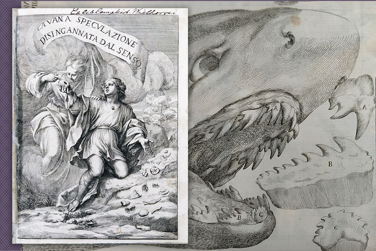 Полное название: Агостино Сцилла «Напрасные домыслы, разочарованные смыслом: ответное письмо о морских телах, окаменелостях, найденных в различных местах.» (Agostino Scilla, La vana speculazione disingannata dal senso: lettera risponsiva circa i corpi marini, che petrificati si trovano in varii luoghi terrestri) 1670 года издания.