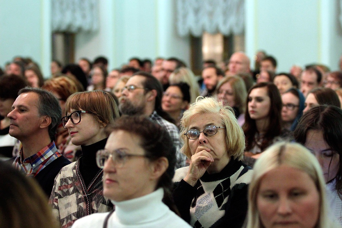10 октября 2015 года в Москве прошла Ночь музыки. С двух часов дня и до поздней ночи в столице на разных площадках города звучала живая музыка. Две из них открылись в Российской государственной библиотеке. В 20:00 в Доме Пашкова начался концерт ансамбля русской духовной музыки «Сирин», а в 22:00 в конференц-зале главного здания библиотеки дал сольный концерт виолончелист Борис Андрианов. Концерты в Российской государственной библиотеке посетили около тысячи человек. Концерт ансамбля «Сирин» в Доме Пашкова Ансамбль древнерусской духовной музыки «Сирин» в Доме Пашкова исполнил древнерусские богослужебные песнопения XV—XVIII веков: знаменный, путевой, демественный распевы, строчное и знаменное многоголосье, ранний партес и монастырские распевы. Были исполнены и духовные стихи — жанр, в котором смешиваются музыкальные традиции разных времен и народов. Это вполне отвечало теме нынешней Ночи музыки — «Музыкальная карта мира». Ансамбль «Сирин» был создан в 1989 году Андреем Котовым и группой молодых профессиональных музыкантов с целью возрождения древних православных певческих традиций. Андрей Котов, руководитель ансамбля — фольклорист, исполнитель, композитор, хормейстер — посвятил себя практическому исследованию особенностей аутентичного пения русской средневековой музыки и народных песен. «Сирин» — это особая сфера современного хорового исполнительского искусства. Коллектив создает уникальные программы на грани жанров, сочетая музыку с элементами драматического действия, академическую хоровую стилистику и богослужебное пение. Звучание ансамбля древнерусской духовной музыки отличается особой манерой, в которой сочетаются приемы мастеров аутентичного пения, насыщенный обертонами звук и утонченная мелодическая эстетика. Вполне предсказуемо ансамбль сорвал в Доме Пашкова настоящий аншлаг — слушателям не хватало мест. «Людей пришло, как на сборную России по футболу» — такие отзывы можно было найти в интернете. Фотографии с концерта ансамбля «Сирин» в Доме Пашкова.