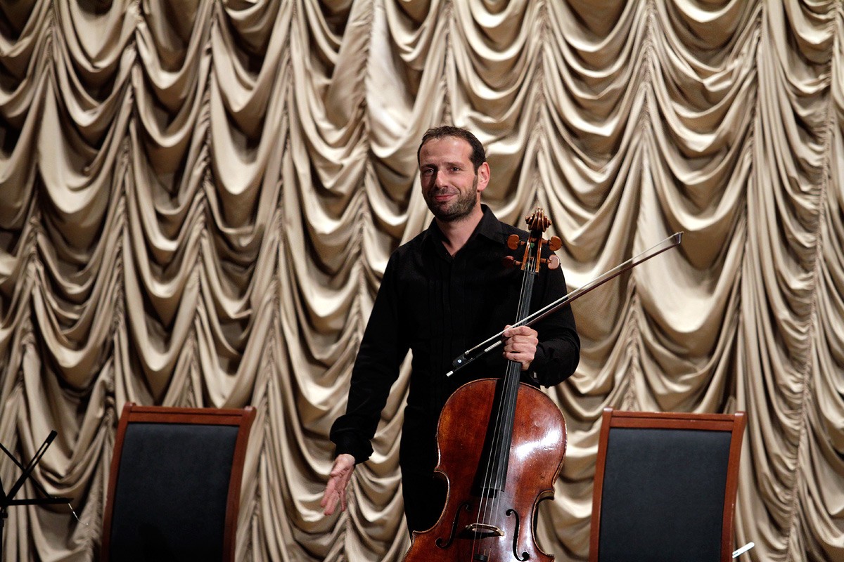 Концерт Бориса Андрианова в концеренц-зале РГБ «Борис Андрианов негромко сводил публику с ума» — а так делились в интернете впечатлениями еще об одном концерте в Российской государственной библиотеке. В конференц-зале РГБ выступал виолончелист Борис Андрианов — один из ведущих российских музыкантов своего поколения. Уже в шестнадцать лет он стал лауреатом первого Международного юношеского конкурса им. П. И. Чайковского. Борис Андрианов работал с такими известными дирижерами, как Валерий Гергиев, Владимир Федосеев, Джанандреа Нозеда, Павел Коган. Он является вдохновителем и руководителем проекта «Поколение звезд», в рамках которого проводятся концерты молодых талантливых музыкантов в разных городах и регионах России. За этот проект в 2009 году Борис был награжден премией правительства РФ в области культуры. В том же году он начал преподавать в Московской консерватории. В конференц-зале РГБ знаменитый виолончелист выступил со своими учениками — Анной Кошкиной, Ярославом Чистовым, Евгенией Моргуновой, Ярославом Сродны. Борис играет на уникальном инструменте работы Доменико Монтаньяна из Государственной коллекции уникальных музыкальных инструментов. Фотографии с концерта Бориса Андрианова в конференц-зале РГБ.