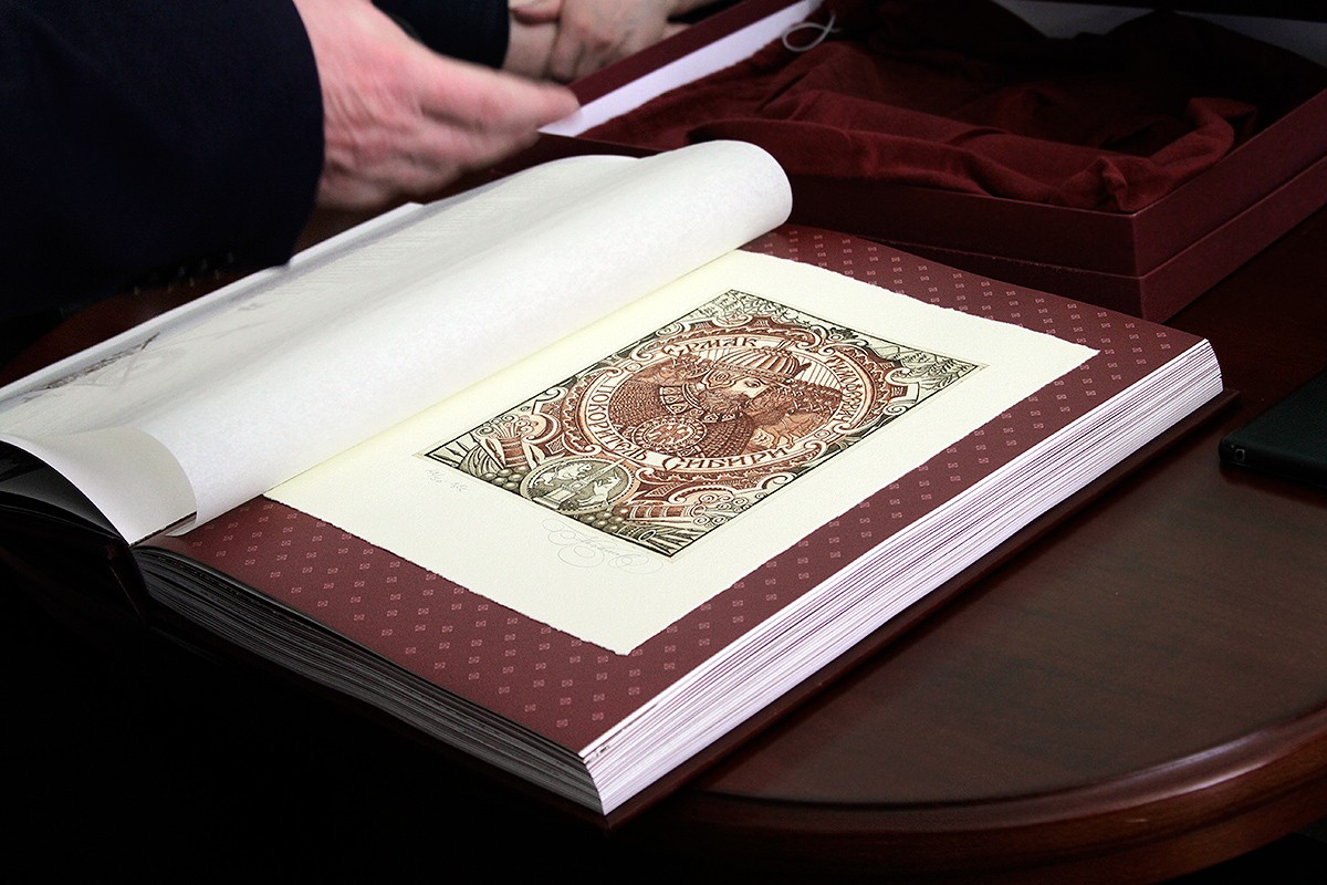 Фонд «Возрождение Тобольска» всячески способствует сохранению и популяризации культурного наследия сибирского региона: стремится восстановить памятники культуры, поддержать инициативы, направленные на возрождение народных промыслов и культурных традиций, поддерживает творческую молодежь. Одна из ярких страниц деятельности фонда — издание книг и альбомов о Тобольске и тоболяках. Многие из них — настоящие библиофильские шедевры, к работе над которыми привлекаются специалисты самого высокого класса. Одним из таких произведений книжного искусства стала книга «20 имен Тобольской истории», выпущенная в конце 2014 года фондом «Возрождение Тобольска» совместно с веронским печатным домом «График». Книга отпечатана тиражом 50 нумерованных и подписанных издателем экземпляров. В библиотеку поступил экземпляр № 42. В этой книге 2490 букв, и каждая буква была не написана, а нарисована, причем в зеркальном отображении. В книге также двадцать портретов-биографий знаменитых россиян, чьи судьбы в разное время оказались связаны с Тобольском. Их украшают двадцать оригинальных офортов, вручную оттиснутых выдающимся петербургским графиком Ниной Казимовой — королевой акватинты, экслибриса и офорта, как ее называют коллеги-художники и искусствоведы. Ее экслибрисы есть и в собрании Российской государственной библиотеки . На протяжении двух лет художница не занималась ничем, кроме этой книги. Она погрузилась в исторический материал, работала над офортами, соединяя принципы композиции парадного портретирования с символикой, раскрывающей судьбы и род занятий героев. Уточняла источники рисунков — например, все известные на сегодня двадцать портретов Ермака фантастические, поэтому Нина Ивановна, беря за основу рисунок с театрального эскиза Брюллова, связала его с литературными описаниями Карамзина и наложила на лубочные детали. К экземплярам книги № 1—20 прилагаются двадцать медных офортных досок, которые были использованы при печати портретов.