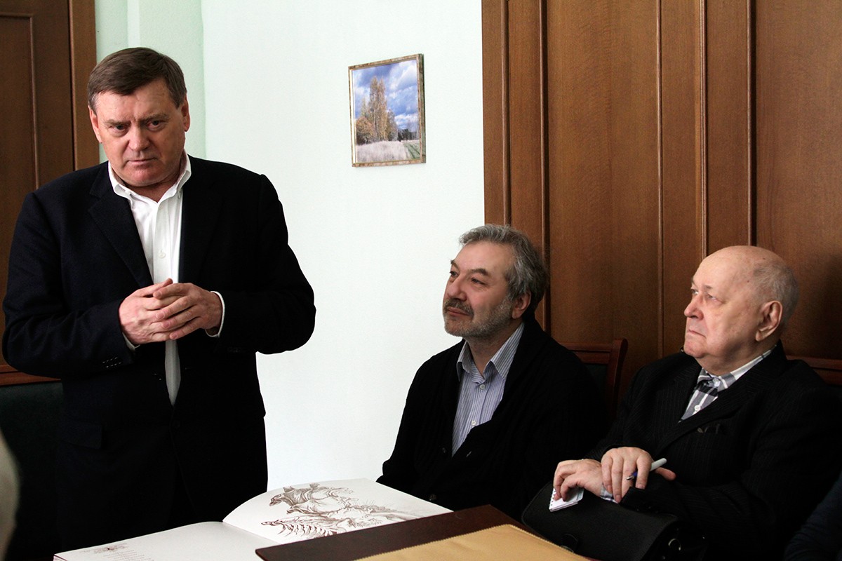 Кроме книги «20 имен Тобольской истории», Российская государственная библиотека получила в дар от делегации из Сибири также каталог коллекции художественных открыток «Охота». Все представленные в каталоге открытки — из уникальной коллекции Игоря Алексеевича Иванова, одного из попечителей общественного благотворительного фонда «Возрождение Тобольска». Коллекция насчитывает порядка 1800 экспонатов. Это почтовые карточки, выпускавшиеся в эпоху расцвета эпистолярного жанра — первой половине XX века — в таких странах, как Россия, Германия, Франция, Австрия, Польша и США. Репродукции включают работы мастеров миниатюрной живописи, начиная от признанных во всем мире графиков и живописцев и заканчивая неизвестными художниками. В сюжетах миниатюр — сцены охоты на птиц, крупную и мелкую дичь, изображения промысловых животных и охотничьих собак, портреты охотников, пейзажи, юмористические зарисовки на данную тему и многое другое. Выражая признательность за ценные дары, Виктор Фёдоров вручил Аркадию Елфимову высшую награду Российской государственной библиотеки — медаль в честь основателя библиотеки, Государственного канцлера графа Николая Петровича Румянцева. |
