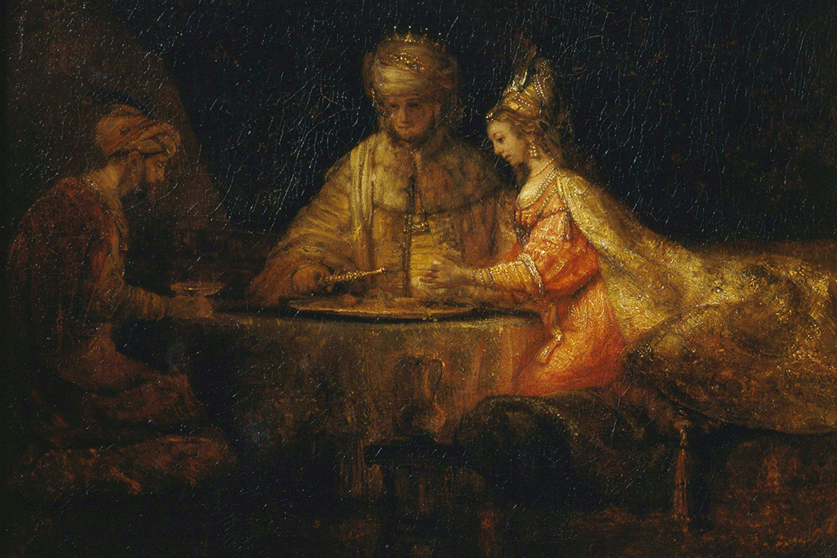 Рембрандт Харменс ван Рейн. Артаксеркс, Аман и Эсфирь. 1660