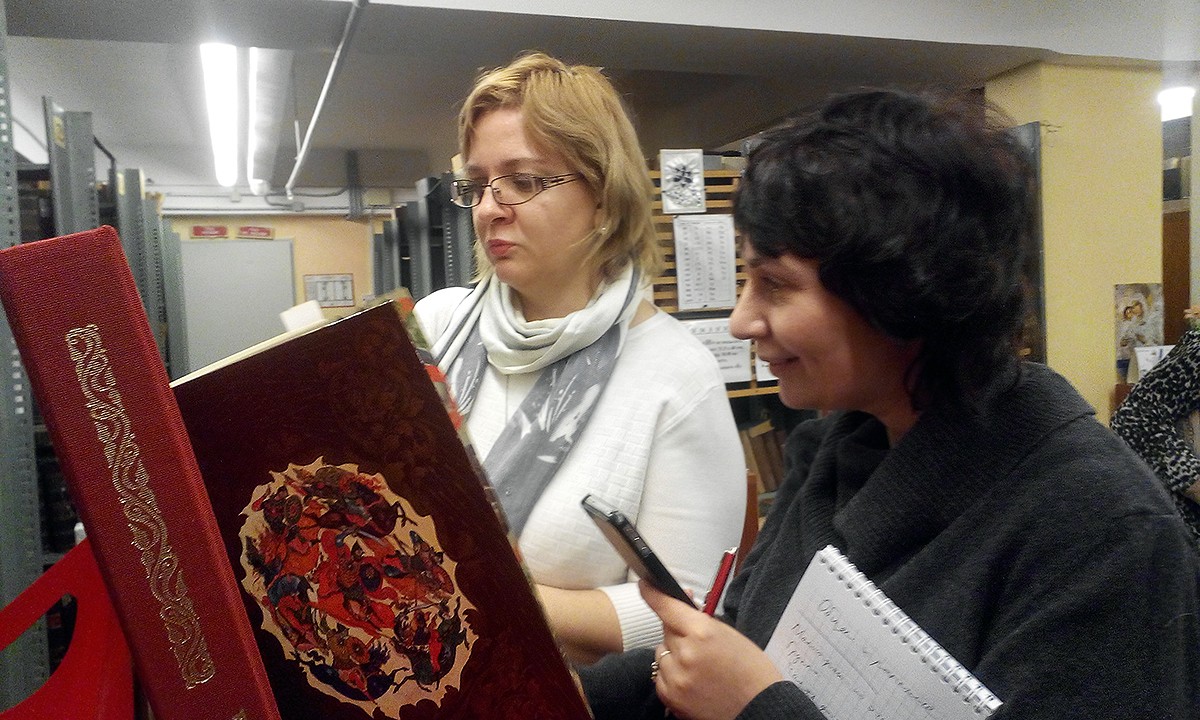 Но остаётся ещё отдел хранения основных фондов. Он располагается на пяти ярусах книгохранилища. Здесь собраны книги и журналы на 368 языках, в том числе на шестидесяти восьми языках народов бывшего СССР, и здесь же — книги на языках малочисленных народов. Знакомят с ними главные библиотекари отдела — Светлана Юрьевна Горюнкова и Ирина Альбертовна Бондарь.