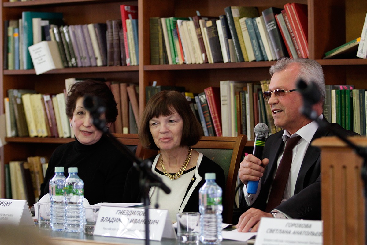 От имени Российской государственной библиотеки госпожу Донну Шидер и других участников встречи приветствовал Владимир Иванович Гнездилов, исполняющий обязанности генерального директора РГБ. «Мы с большим интересом и вниманием следим за работой ИФЛА, всегда поддерживаем решения, которые принимает организация, принимаем участие в этой работе. Мы уже пятнадцать лет несём ответственность за перевод официальных новостей конгрессов ИФЛА и десять лет являемся официальным русским центром ИФЛА. Мы стараемся донести идеи ИФЛА до всего русскоязычного библиотечного сообщества, в том числе и в странах СНГ. И мы с удовольствием выполняем эту работу», — сказал Владимир Иванович.