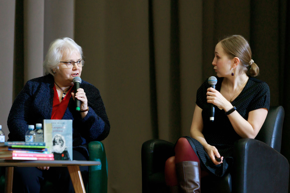 Ольга Громова участвовала в беседе не только как автор двух популярных среди детей и взрослых книг, одна из которых переведена на десяток языков и звучит с театральных подмостков, но и как библиотекарь и бывший главный редактор журнала «Библиотека в школе». Она рассказала о воспитании «тогда» и «сейчас», о культуре, о том, как говорить с детьми об истории и какими могут (но не должны) быть книги.