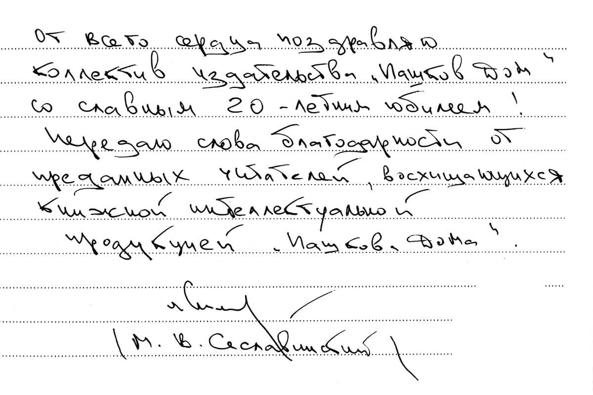 Тепло приветствовал собравшихся руководитель Федерального агентства по печати и массовым коммуникациям Михаил Вадимович Сеславинский. Будучи давним другом и автором «Пашкова дома», он пожелал коллективу дальнейших успехов в подготовке и выпуске интеллектуальной литературы.