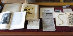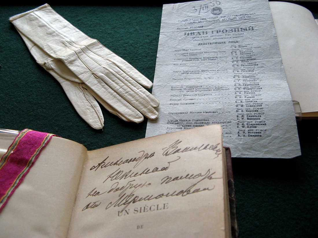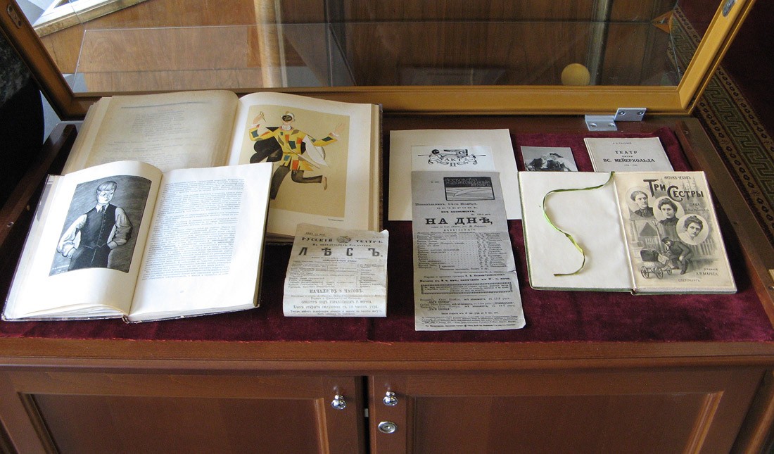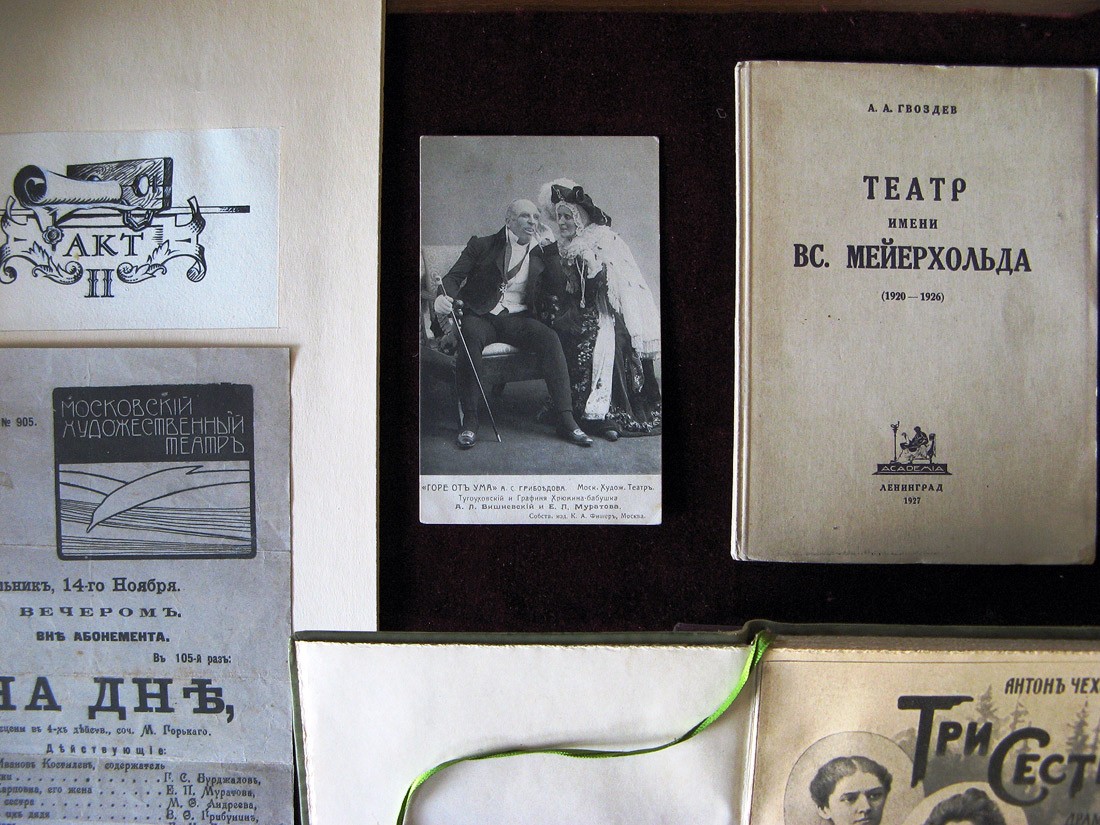 5 марта 2012 года в Российской государственной библиотеке открылась выставка «Театр в Москве. Издания XVIII — первой половины XX века». Представлены не только хранящиеся в фонде НИО редких книг (Музея книги) словари, альманахи, альбомы. Но еще и то, что создает праздничное ощущение театра — программы спектаклей, бинокль, лайковые перчатки. Один из самых любопытных экспонатов — книга известного английского актера и критика Дэвида Гаррика «Сочинение, содержащее в себе примечания на драмы, искусство представления, и игру театральных лиц...» (М., 1781). Театралы и книголюбы непременно отметят и «Драматический словарь, или Показания по алфавиту всех российских театральных сочинений и переводов...» (М., 1787) — первое в России издание такого рода. Век девятнадцатый в этом ряду представлен «Драматическим альбомом для любителей театра и музыки на 1826 год» (М., 1825). Шмуцтитул альманаха украшает гравированное изображение Большого театра. Спустя четверть века появился также включенный в экспозицию «Драматический альбом с портретами русских артистов и снимками с рукописей», куда вошли тексты пьес, биографии, факсимильные воспроизведения афиш. История нашего города неразрывно связана с историей его прославленных театров. О Московском художественном напоминает обложка первого отдельного издания чеховских «Трех сестер» (СПб., 1901) с овальными портретами исполнительниц главных ролей на первом представлении пьесы. Рано ушедшая из жизни Маргарита Савицкая, в которой Станиславский усмотрел большой талант еще в начале ее пути: «Восхитительна. Выйдет толк». Ольга Книппер, чей брак с Чеховым нажил ей немало недоброжелателей. И неотразимая красавица Мария Андреева, по какой-то странной прихоти судьбы ставшая революционеркой. Немалый интерес представляют два родственных издания. «Императорского Большого театра программы» — экземпляр в кожаном переплете с золотым тиснением начала прошлого века. Примечательно, что напечатанное в нем либретто «Пиковой дамы» предваряет реклама первой российской паровой фортепианной фабрики К. М. Шредер. И «Императорского Московского Малого театра программы», рассказывающие о спектаклях 1894 и 1895 годов. Речь, в частности, идет о «Талантах и поклонниках», где блистала великая Мария Ермолова. На выставке есть книга с ее автографом. Это «Век женской моды» (Париж, 1894) с цветными изображениями дамских туалетов за сто лет. К образцам высокого искусства книги безусловно относится издание, посвященное вахтанговской постановке «Принцессы Турандот» (премьера состоялась в 1922 году). Обложка, виньетки, иллюстрации выполнены оформителем спектакля Игнатием Нивинским.