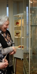 — Мы жили на Зубовском бульваре. И вот дедушка, уходя на работу в библиотеку, всегда говорил: «Я поехал в музей». Это были его места: родился на Волхонке, там же учился в гимназии, затем преподавал, а в 1919 году его взяли в Румянцевский музей, который является предтечей вашей библиотеки. Мне очень приятно, что именно здесь выставлены работы моего сына.