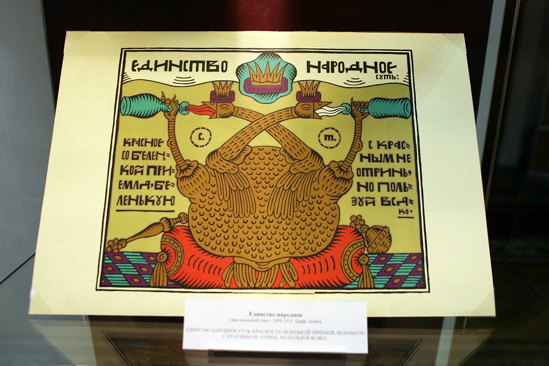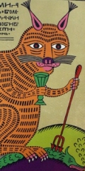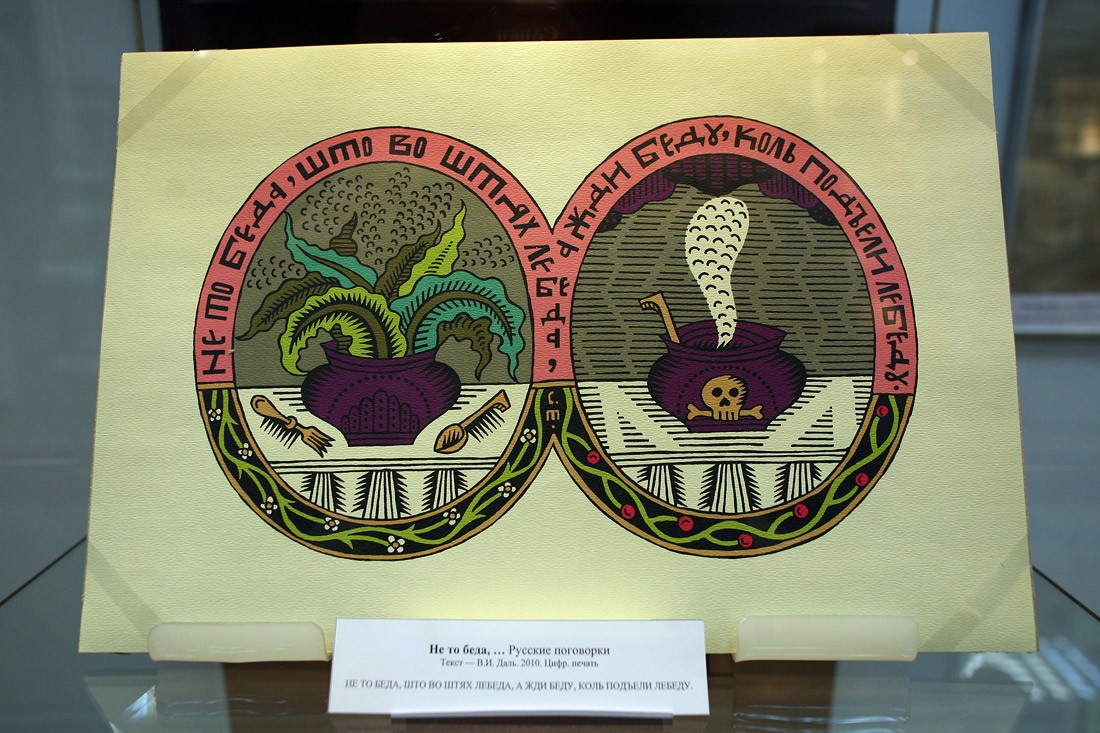 — Мне один друг сказал: «Ты хорошо пишешь, но ты ленивый. Романы ты писать никогда не будешь». Вот я и создаю короткие тексты, к которым рисую картинки. Иногда использую чужие тексты, например Владимира Ивановича Даля. Может, я не знаю историю лубка до тонкостей, как искусствоведы, но это абсолютно мое. Лубочным изображением я могу проиллюстрировать все что угодно. Хоть диамат...