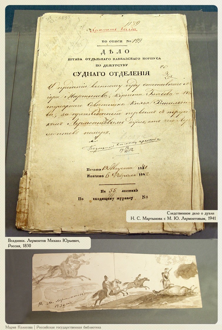 Наверняка вызовет интерес книга и личность немецкого медика, этнографа и натуралиста Иоганна Готлиба Георги «Описание всех обитающих в Российском государстве народов, их житейских обрядов, обыкновений, одежд, жилищ, упражнений, забав, вероисповеданий и других достопамятностей» (1799). «Земля, называемая грузинцами, Базианиею, лежит в высоких горах около Малки, Терека и Аргунов... Базиане не весьма многолюдны и находятся теперь в союзе с Грузиею и Россиею; некоторые уезды состоят под управлением кабардинских князьков, которые берут от них в подать с каждого семейства по одной овце», — пишет Георги о балкарцах. Эта работа была первым сводным этнографическим описанием России, за которую Екатерина II подарила Георги золотую табакерку и велела напечатать книгу «за счёт кабинета, но в пользу автора». Георги был учеником Карла Линнея и прибыл в Россию по приглашению Императорской академии наук и художеств: проводил исследования в химической лаборатории с Ломоносовым, ездил в научные экспедиции, первым составил карту Байкала. Рядом, на одном стенде, — дело о дуэли Николая Мартынова с Михаилом Лермонтовым 1841 г. с пометкой красными чернилами «Хранить всегда» и автограф стихотворения Сергея Есенина «На Кавказе» (1924), в котором Кавказ предстает источником бесконечного вдохновения, в доказательство чего поэт предъявляет творчество Грибоедова, Пушкина и Лермонтова.