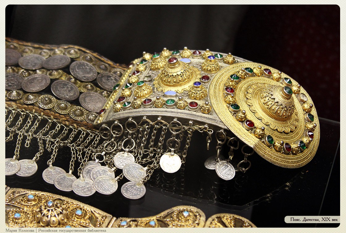 Чтобы не заблудиться в этимологических спорах и многообразии древних легенд, выставку в Царицыне оформили в виде словаря: все 1430 экспонатов служат «переводом» знакомых и не очень слов и понятий: наездник, чабан, годекан, джигит, аул, гора, башня, аксакал, каракуль, четки, наиб, набег... Интересны подробные аннотации к ним: «Появление на людях без папахи (шапки), как и без кинжала, считалось недопустимым. Папаха неприкосновенна на голове мужчины — это знак его мужества, силы, отваги и превосходства перед женщиной. Великим оскорблением являлось сбить у кого-либо шапку с головы. Народная мудрость гласила: «Если тебе не с кем посоветоваться — посоветуйся с шапкой». «Вещи, считавшиеся среди дагестанского простонародья признаком счастья: достать себе Коран, написанный выдающимся почерком; красивая жена из числа двоюродных сестер; верховой жеребец из породы светлосерых лошадей; хороший кинжал, изготовленный в селении Казанище и выделанный мастером по имени либо Базалай-Али, либо Абдул-Азиз; янтарные четки, либо коралловые; несколько беспечный образ жизни...»