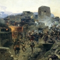 Так что неудивительно, что выразительные кавказские пейзажи и образ жизни стимулировали рисовать и тех, у кого художнический талант был еще ярче — Михаила Лермонтова, Архипа Куинджи, Льва Лагорио, Надежду Удальцову, не говоря о представителях национальных школ живописи — Нико Пиросманишвили, Мартироса Сарьяна, Таира Салахова, Лазаря Гадаева, Владимира Соскиева. Всего на выставке представлено около ста живописных полотен и скульптур из фондов Государственной Третьяковской галереи, Государственного музея искусства народов Востока, из собраний авторов и частных коллекций. «Воздействие своеобразной обстановки и характера войны на русское изобразительное искусство, так же как и на русскую художественную литературу и поэзию, было многосторонним и плодотворным: она внесла множество новых сюжетов, типов, характеров, драматических положений, картин дикой природы и т. д.», — писал исследователь русской батальной живописи Владимир Садовень.