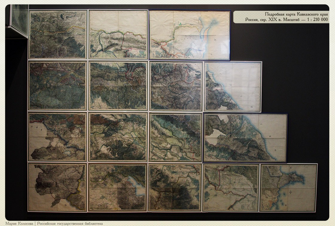 На выставке свыше двухсот документов из отделов редких книг, рукописей и картографических изданий РГБ. Некоторые из них интересны не только как ценные исследования Кавказского региона, но и связаны с историей библиотеки. Так, основатель библиотеки, государственный канцлер Николай Петрович Румянцев возглавлял в период начала кавказских войн Азиатский департамент Министерства иностранных дел, в котором служил автор «Новейших географических и исторических известий о Кавказе» (1823) Семен Михайлович Броневский. Побывав в персидском походе в конце XVIII в., Броневский из-за нехватки литературы о Кавказе начал собирать сведения об истории и географии края — так появилась эта книга об отношениях России с Кавказом и Персией в XVI — начале XIX вв.