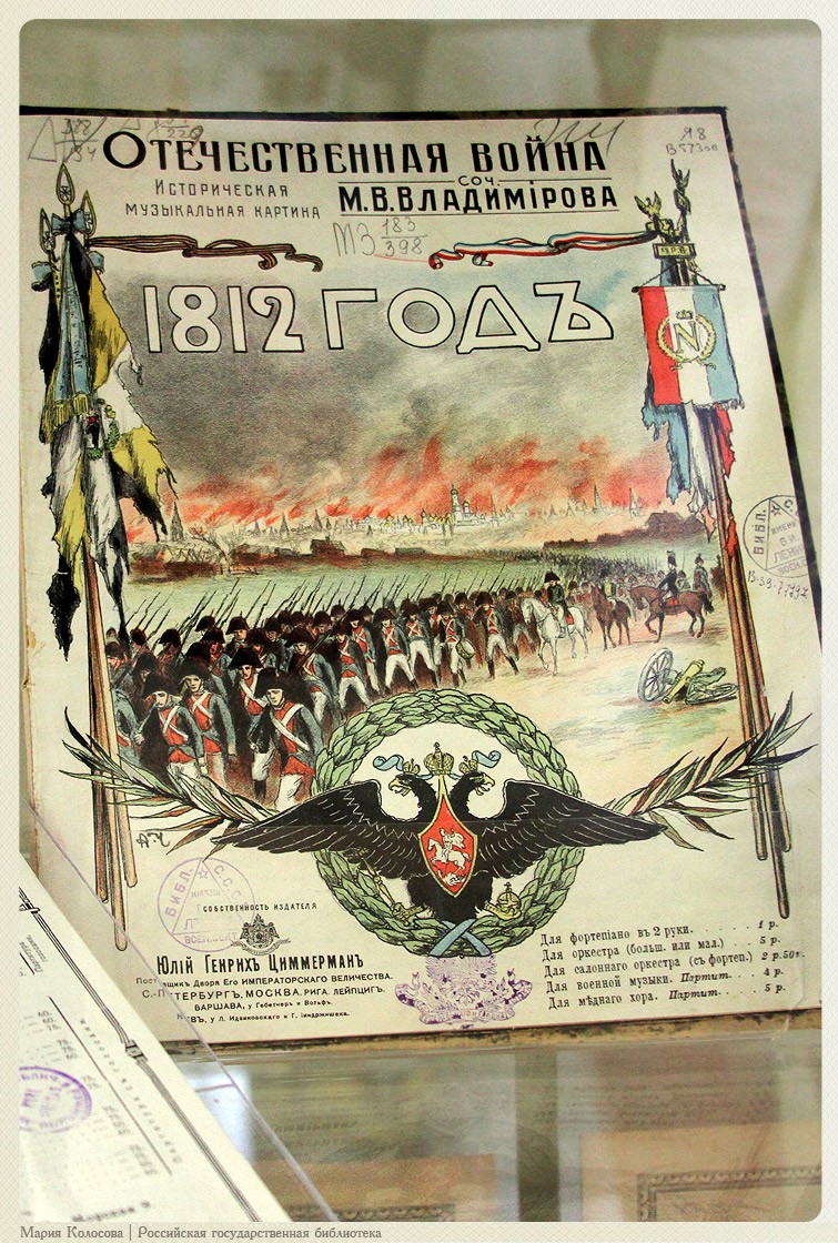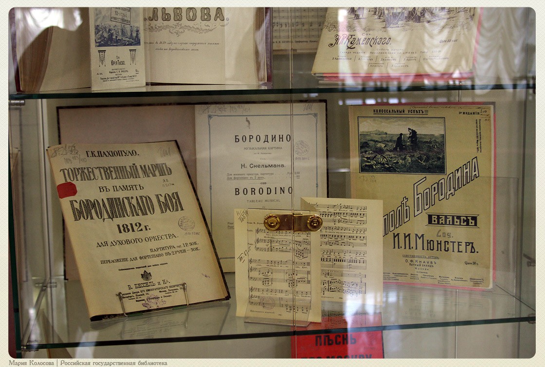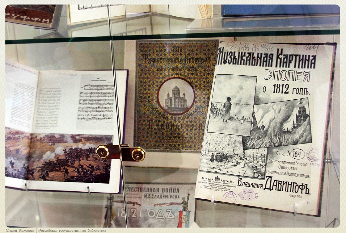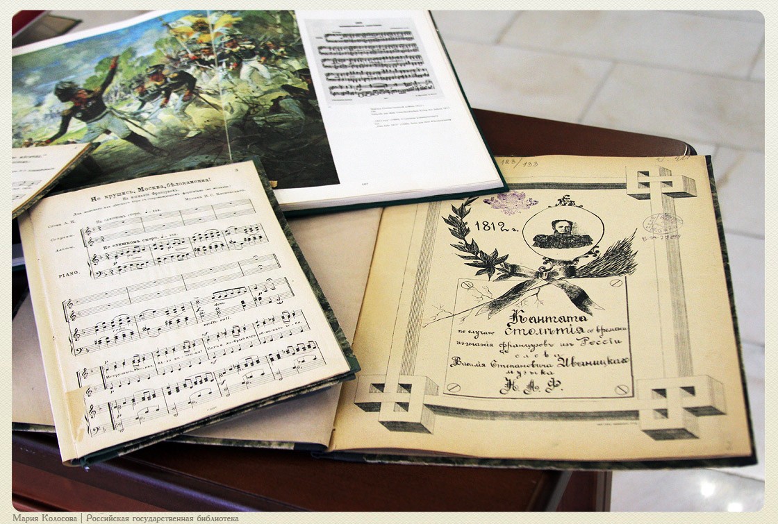 В РГБ начала работу выставка «"Вспомним, братцы, россов славу!..": война 1812 года в музыке » . Она представляет песни, марши, вальсы, оперы, создававшиеся в разное время, но все без исключения отмеченные печатью искренности и таланта. Отделом нотных изданий и звукозаписей (МЗ) подобраны наиболее яркие произведения, посвященные грозным событиям 200-летней давности.