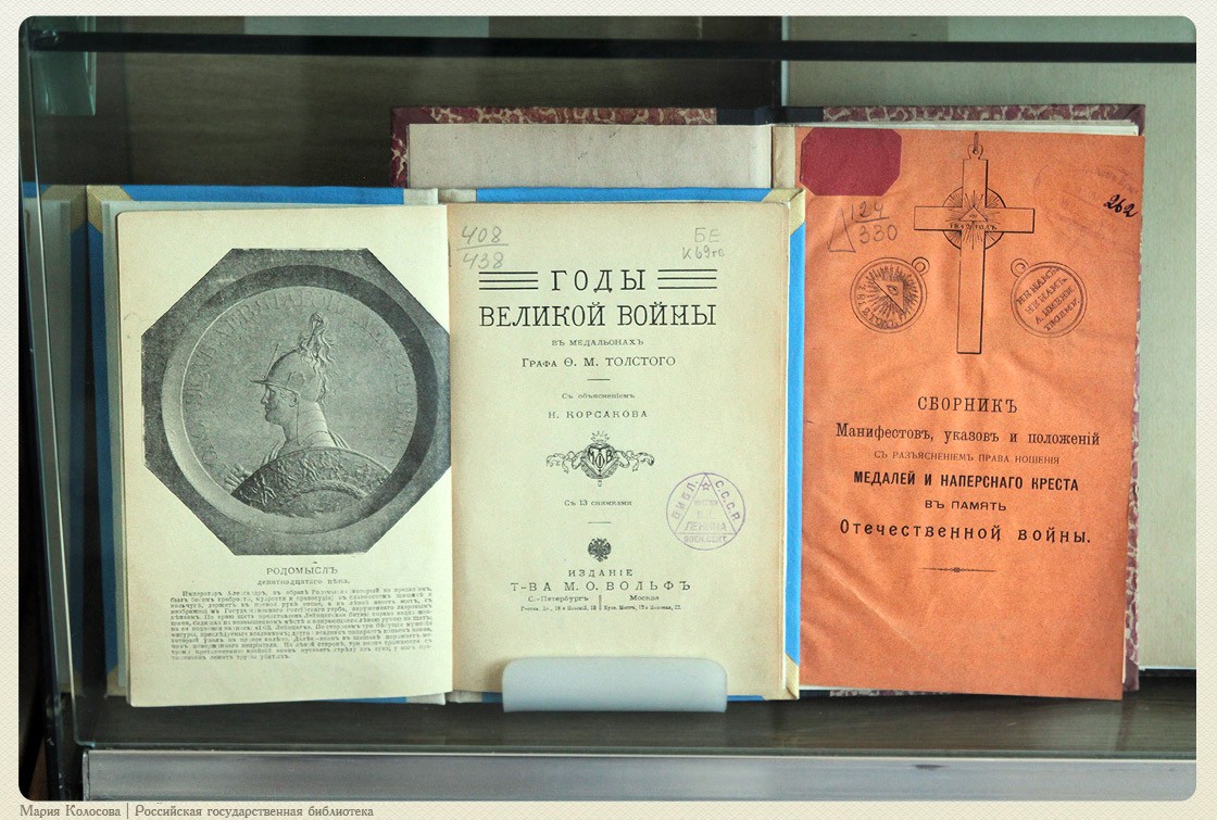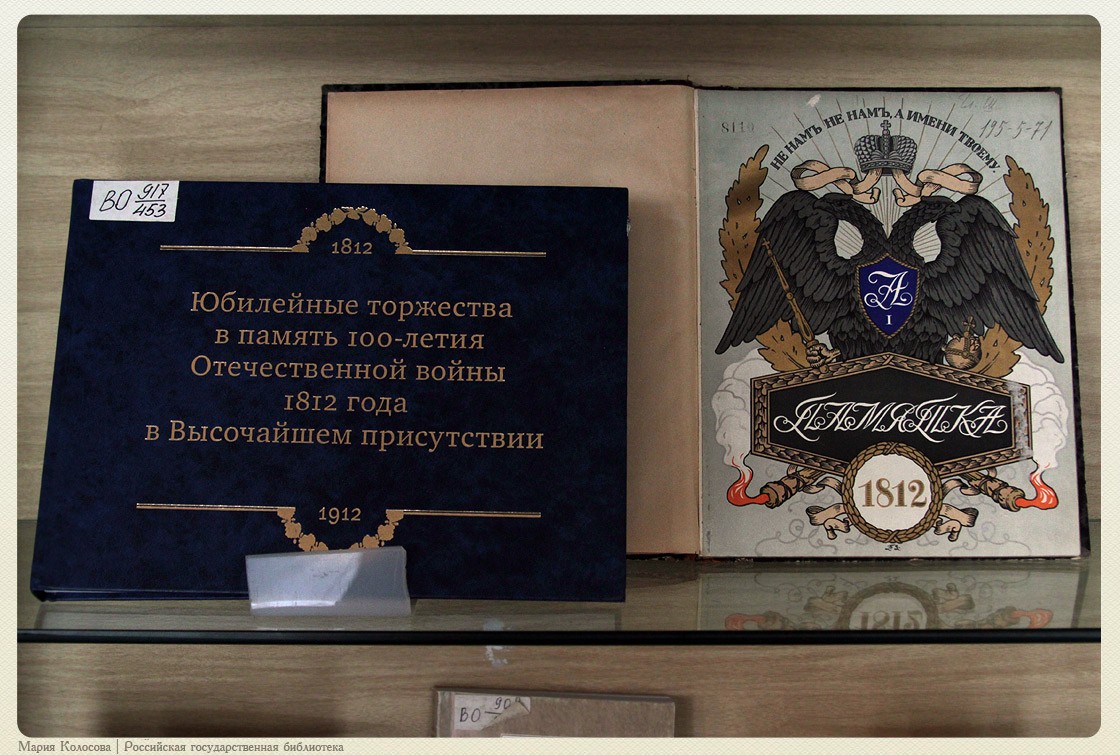 В противостояние Наполеону были вовлечены самые разные слои русского общества, поэтому представляется естественным, что к делу сохранения памяти о войне сделались причастны все, от русской императорской фамилии до крепостных крестьян. О различных формах выражения этой памяти и рассказывают книги из экспозиции на мраморной лестнице: