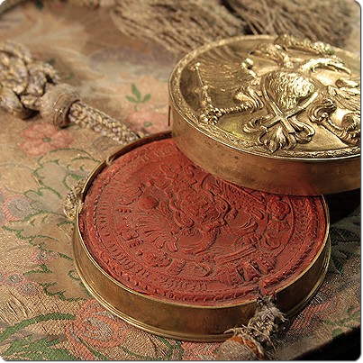 Лаконичные материалы свидетельствуют о симпатиях и антипатиях самодержцев. Красноречивый жанр — жалованные грамоты. Одна из показанных на выставке дает право на графский титул ближайшим сподвижникам Петра I — военным и государственным деятелям Федору Матвеевичу и Петру Матвеевичу Апраксиным. Богато оформленный документ, датируемый 31 декабря 1715 года, в начале 1920-х поступил в отдел рукописей библиотеки из архива Апраксиных, который находился в имении Ольгово. Еще одна жалованная грамота возводит «на графское достоинство» Карла Ивановича фон дер Остен-Сакена. Более десяти лет он состоял воспитателем при подрастающем цесаревиче (будущем Павле I), и наконец награда за труды. Грамота выглядит роскошно: парчовый переплет с вензелем императора, красная сургучная печать.