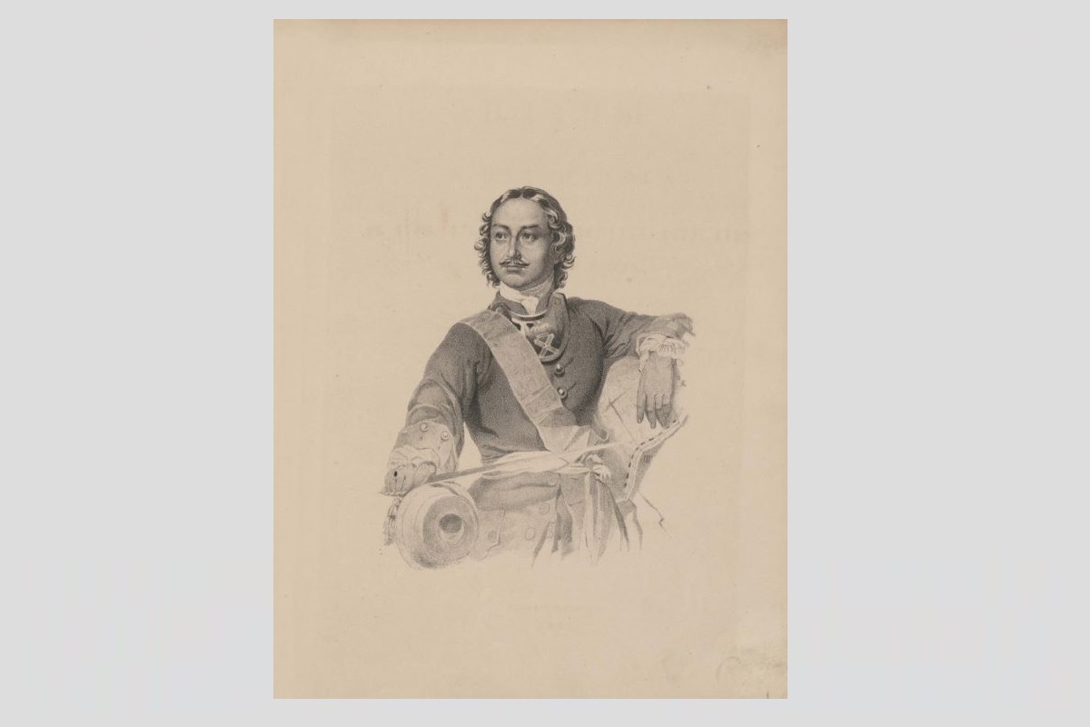 Портрет Петра I // Планы С. Петербурга в 1700, 1705, 1725, 1738, 1756, 1777, 1799, 1840 и 1849 годах с приложением планов 13 частей столицы 1853 года / сост. Н. Цылов. [1:67 200], 672 м в 1 см. Санкт-Петербург : Тип. Штаба отдельного корпуса внутренней стражи, 1853. 55 л. карт : цв. ; 27×21 см