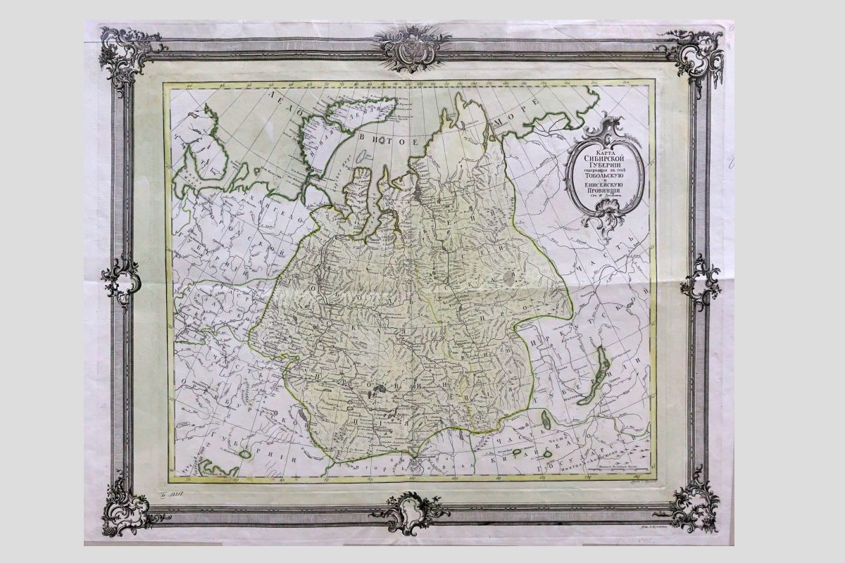 • Карта Сибирской губернии, содержащая в себе Тобольскую и Енисейскую провинции / соч. И. Трускот ; вырез. С. Склунов ; грид. И. Кувакин. [1:7 980 000], ок. 80 км в 1 см. [Санкт-Петербург, 1775]. 1 л. : раскраш., грав. ; 64×81 см
