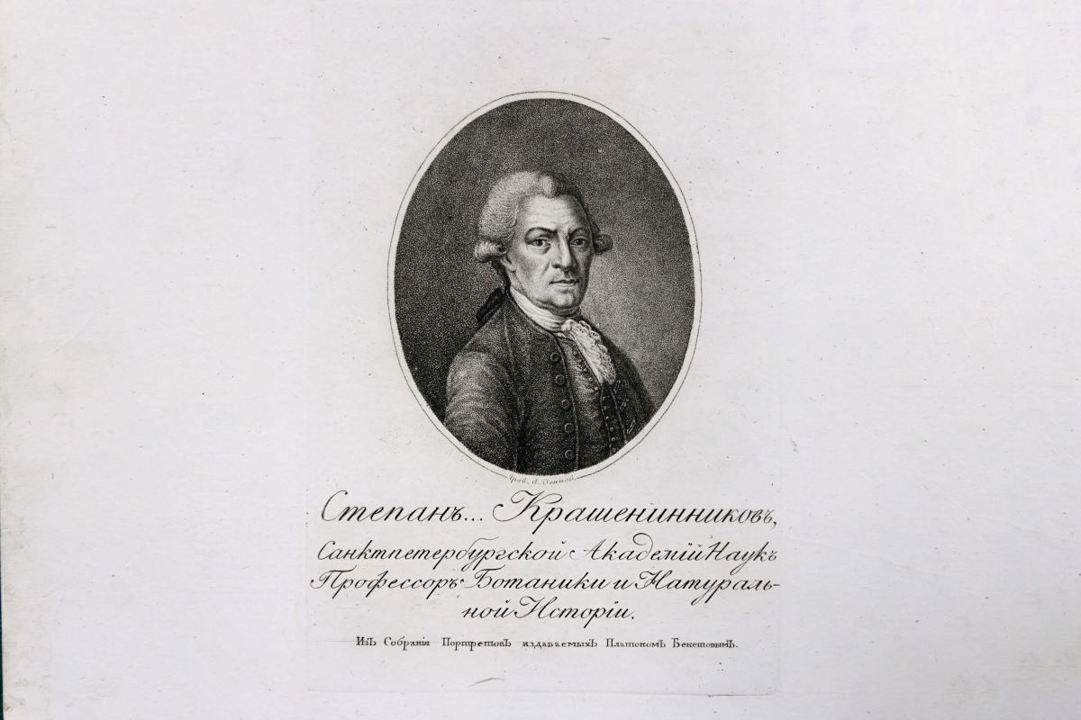 • Степан Крашенинников, Санктпетербургской Академии Наук профессор ботаники и натуральной истории / грав. А. Осипов ; Из Собрания портретов, издаваемых Платоном Бекетовым : [эстамп]. [Москва, 1802]. 1 л. ; 32,7×26,3 см