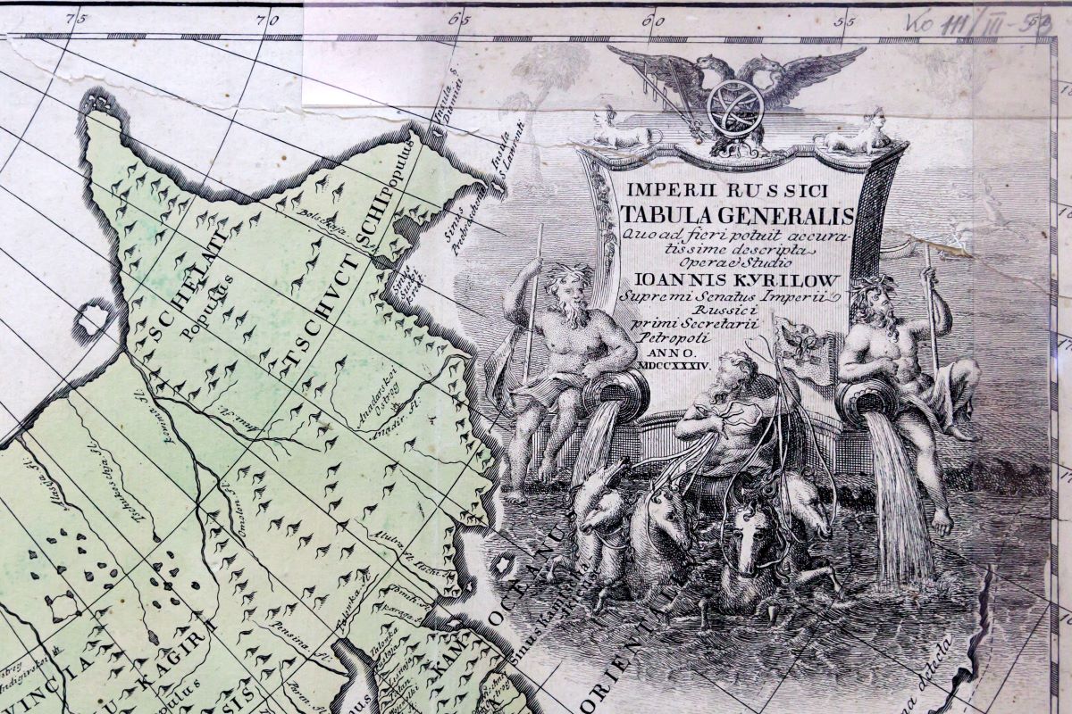С именем Ивана Кирилова связано наступление нового периода в истории русской картографии. Занимая должность обер-секретаря Сената, он получал карты от геодезистов, снимавших территорию России. В 1734 году в Академии наук была напечатана первая «Генеральная карта о Российской империи» Ивана Кирилова. Несмотря на её неточность, это была карта, составленная по оригинальным источникам геодезической съёмки. Оригинал карты можно увидеть на выставке.