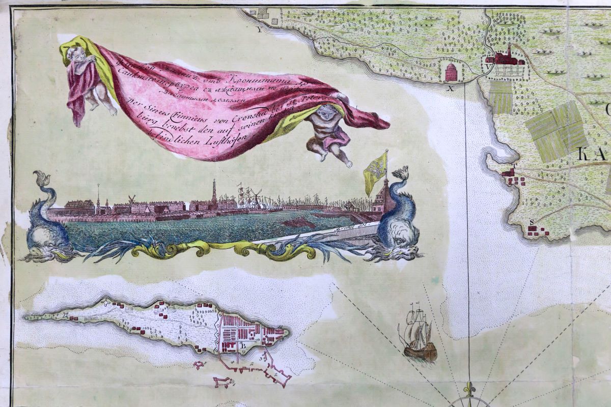 • Финский залив от Кронштадта до Санкт-Петербурга с лежащими по берегам забавными домами. [1:71 400], 714 м в 1 см. [Санкт-Петербург : Академия наук, 1742]. 1 л. : раскраш., грав. ; 53×75,5 см