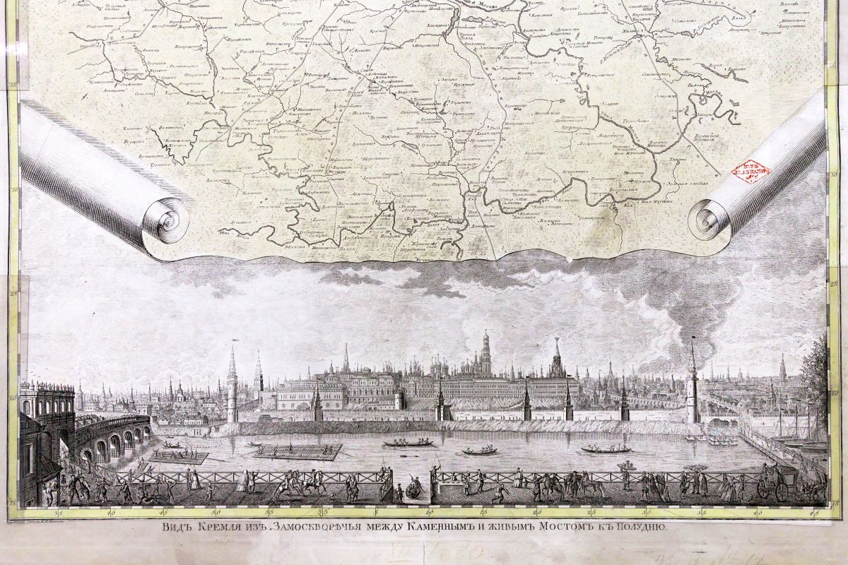 Интересно, что демонстрирующийся на выставке «План царствующего града Москвы с показанием лежащих мест на 30 верст в округе», вышедший в академическом издательстве в 1763 году, в картографической литературе нередко называют «ломоносовским».