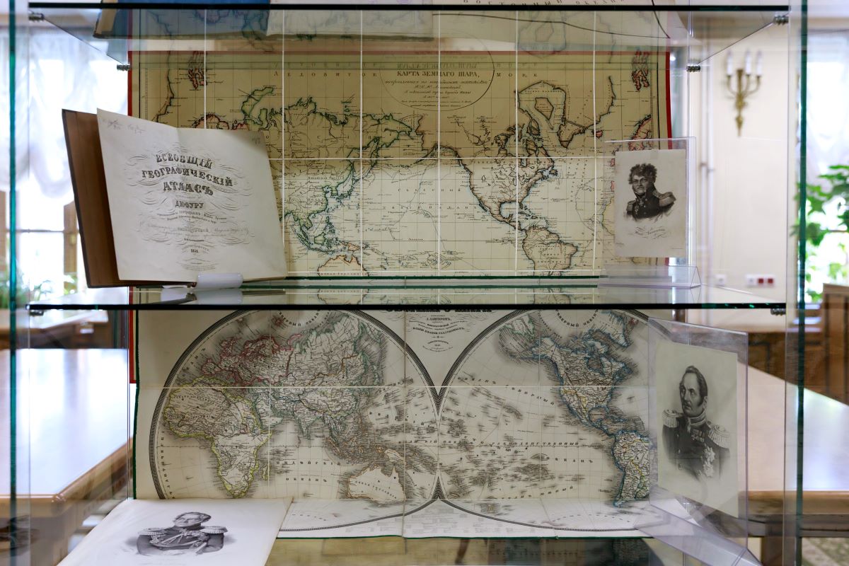 В 1737 году в Академии наук основан Географический департамент, в котором сосредоточилась вся работа по картографированию страны. В этом же году выходит в свет «Атлас, сочинённый к пользе и употреблению юношества и всех читателей ведомостей и исторических книг», составленный в Географическом департаменте для учебных целей. Он содержит 27 карт и чертежей, охватывающих территорию мира. Но основной задачей Географического департамента являлось ускорение работ по составлению атласа России, которые были начаты в первые годы создания Академии. «Атлас Российский, состоящий из 19 специальных карт, представляющих Всероссийскую империю с пограничными землями» вышел в свет в 1745 году и, несмотря на существенные недостатки, стал выдающимся событием в истории картографии. Он представлен на выставке.