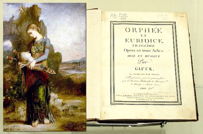 В целом Глюк написал свыше ста опер, при этом в большинстве источников приводятся списки примерно из пятидесяти названий с учетом того, что часть нот утрачена, а авторство ряда работ спорно. Кроме того, он автор нескольких балетов, множества симфоний (или увертюр) для оркестра, концертов для флейты с оркестром, трио-сонат для двух скрипок и генерал-баса, песен и од для голоса в сопровождении клавира. Основные свои творческие силы композитор сконцентрировал на опере. Он создал концепцию нового оперного спектакля, главным качеством которого стало воссоединение сценического, поэтического и музыкального начал. Череду реформаторских опусов открыл «Орфей» , одно из самых совершенных творений Глюка. Для подавляющего большинства музыкантов данная опера существует прежде всего во второй, парижской редакции, созданной композитором в 1774 году, а не в оригинальной венской версии (1762). Именно с парижской редакцией можно познакомиться на выставке. Это партитура издательства «Des Lauriers» (1774). Следующим оперным экспериментом Глюка стала «Альцеста». В экспозицию вошли две редакции оперы: венская и парижская. Особый интерес вызывает венская партитура, выпущенная в 1777 году Яношом Тамашом Траттнером, печатником и книготорговцем из Вены венгерского происхождения. В этом издании опубликовано предисловие с посвящением великому герцогу Тосканы Пьетро Леопольдо и, что самое примечательное, с декларацией художественных принципов композитора, которыми он руководствовался: «Главное на сцене — язык сердца, сильные страсти, <...> полное разнообразие зрелища; меньше внимания следует уделять всяким колоратурностям, виртуозностям, больше — развернутым речитативам» ( Р. Я. Фархадов. Композитор-космополит Глюк, гений реформы и пиара / Рауф Фархадов // Музыкальная жизнь. — 2009. — № 7. — С. 33).