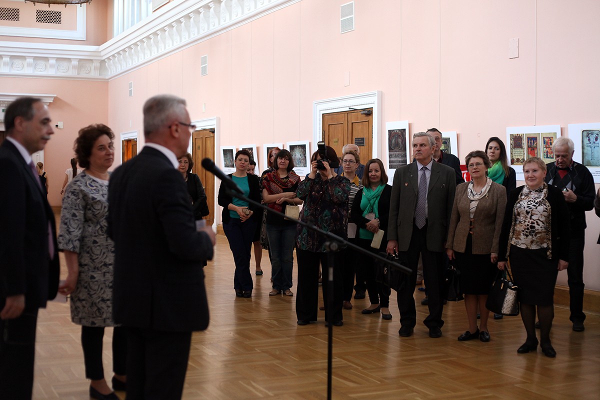 Открывая выставку, исполняющий обязанности генерального директора Российской государственной библиотеки Владимир Иванович Гнездилов напомнил, что выставка приурочена к Дню славянской письменности и культуры. «Материалы, которые представлены на этой выставке, подтверждают: у нас единые корни, единый дух, единое стремление к миру и сотрудничеству», — сказал Владимир Иванович.
