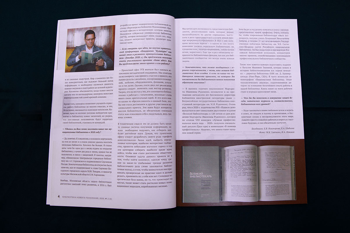 Генеральный директор РГБ Вадим Дуда считает приоритетной задачей «наращивание коллабораций и развитие эффективного сотрудничества внутри профессионального сообщества». В интервью журналу «Библиотеки нового поколения» он подробно рассказывает о реализации нескольких программ в рамках нацпроекта «Культура». Успешное воплощение проектов в жизнь доказывает эффективность командной работы на всех уровнях, продуктивность сотрудничества библиотек, спонсоров, подрядчиков, муниципальных и региональных властей, Министерства культуры, Правительства России.