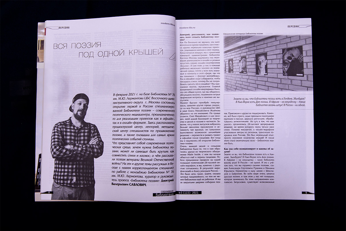 Дмитрий Савлович рассказывает о ярком, необычном коллабе — «Библиотеке поэзии»: союзе библиотекарей, поэтов, музыкантов. Примечательно, что проведённый в «Библиотеке поэзии» 24-часовой поэтический онлайн-марафон вошёл в Книгу рекордов России.