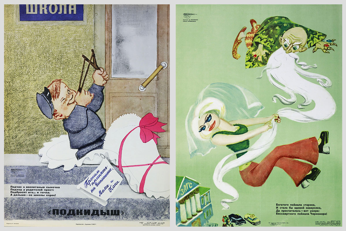 Справа: Богатого поймала старика... Художник — Д. Обозненко, автор стихов — В. Хочинский. 1974