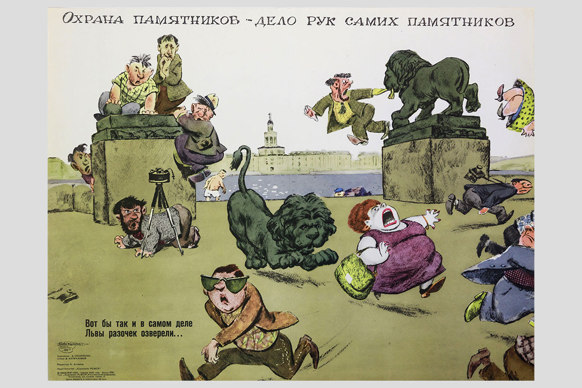 Охрана памятников — дело рук самих памятников. Художник — Д. Обозненко, автор стихов В. Капралова. 1965
