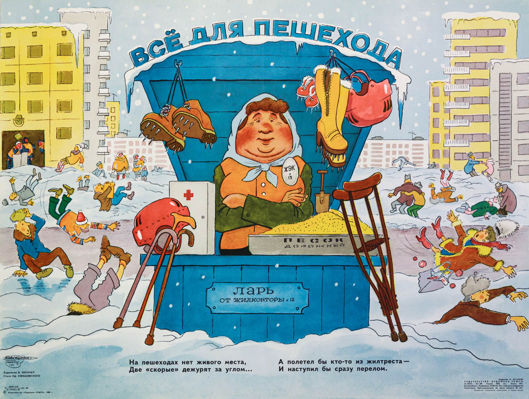 На пешеходах нет живого места... Художник — В. Кюннап, автор стихов — Е. Ефимовский. 1980