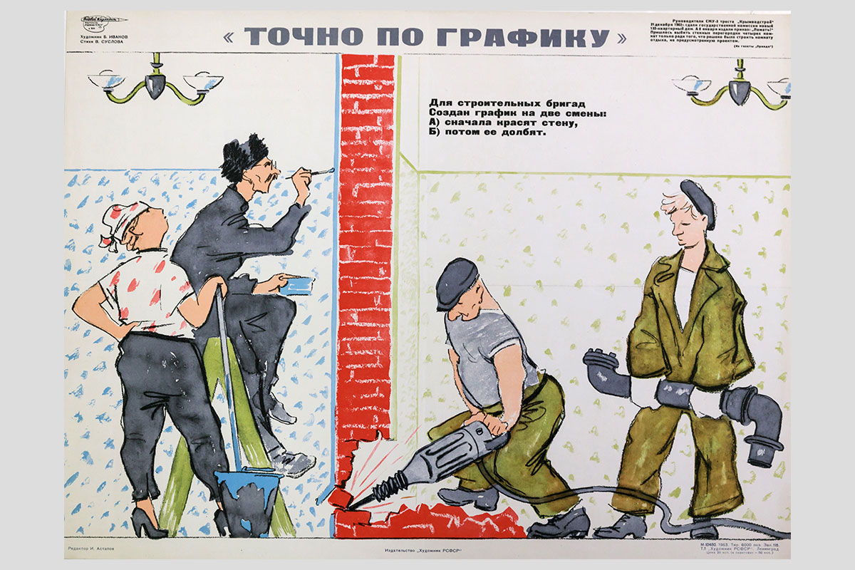 Точно по графику. Художник — Б. Иванов. 1963