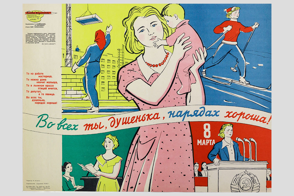Во всех ты, душенька, нарядах хороша! Художники — С. Алейников, И. Харкевич, автор стихов — Б. Тимофеев. 1961