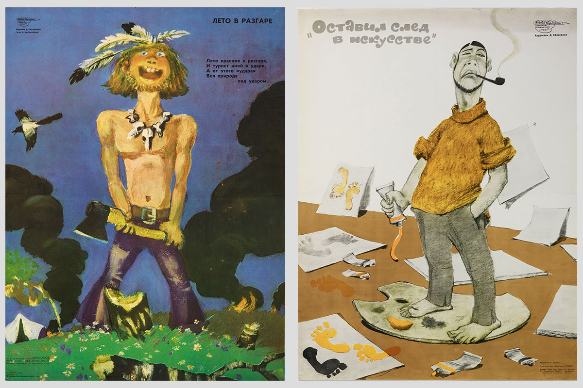 Справа: Оставил след в искусстве. Художник — Д. Обозненко. 1963