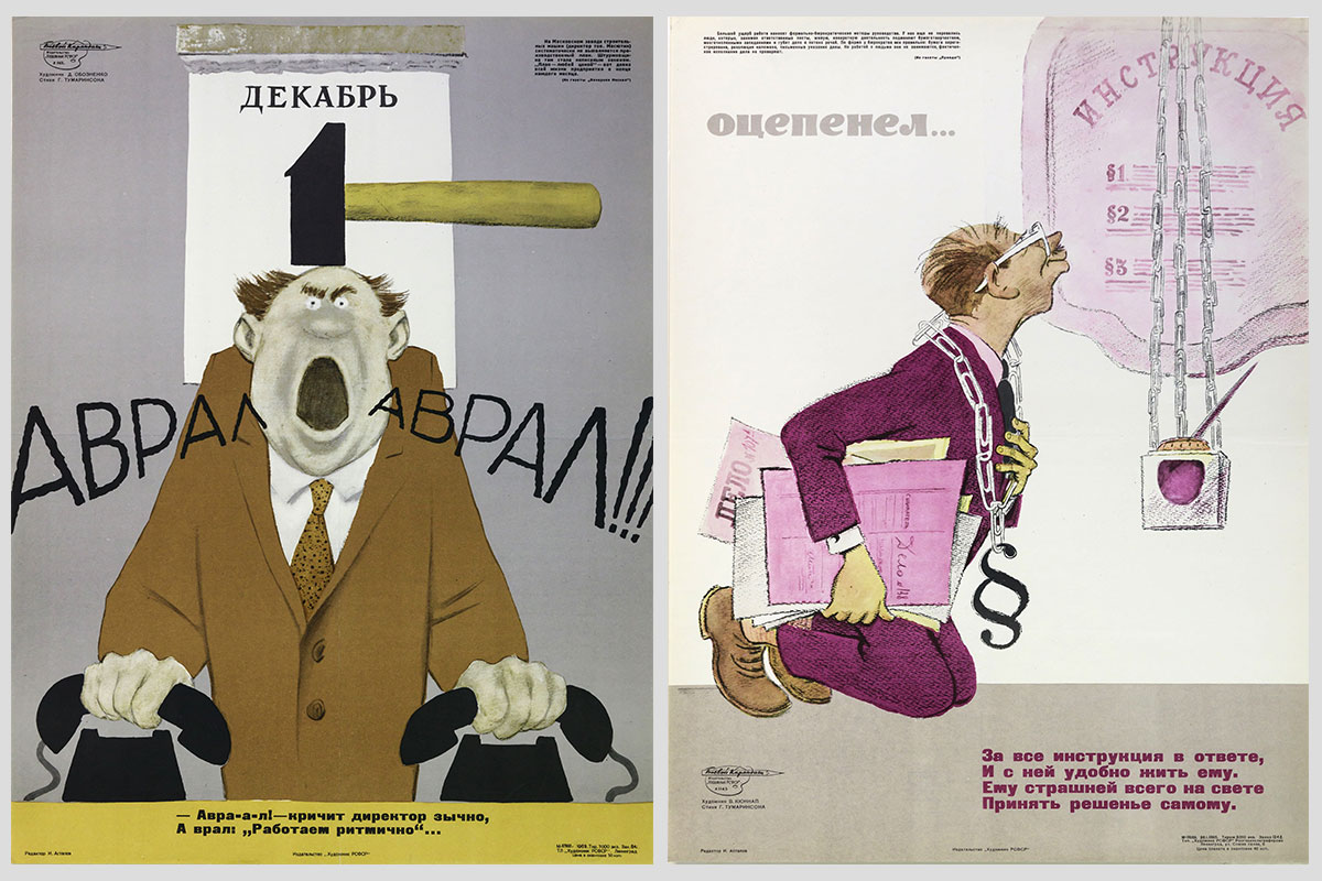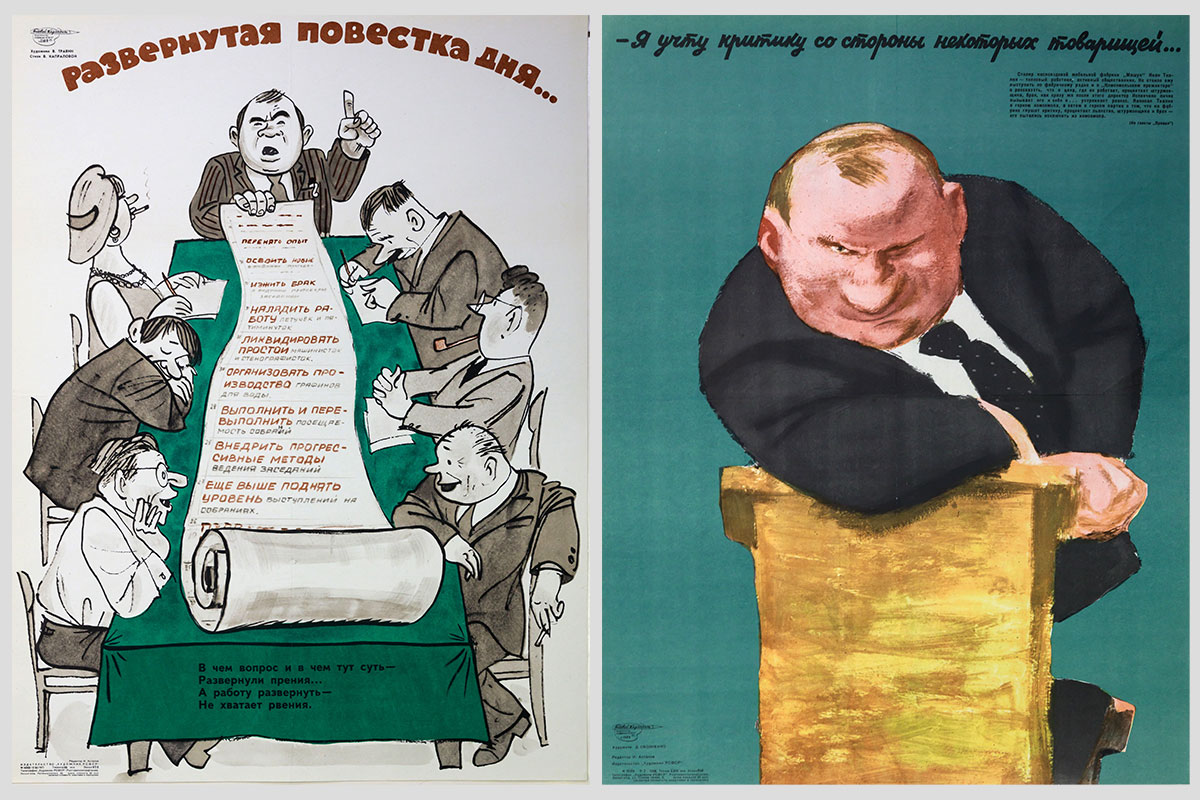 Слева: Развернутая повестка дня... Художник — В. Травин, автор стихов — В. Капралова. 1971