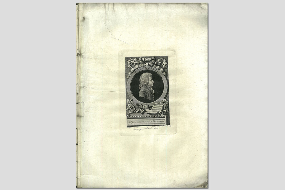 Портрет Моцарта в нотах: Mozart W. Tre Quartetti. Vienna ; Magonza : Artaria Comp., [1791]
