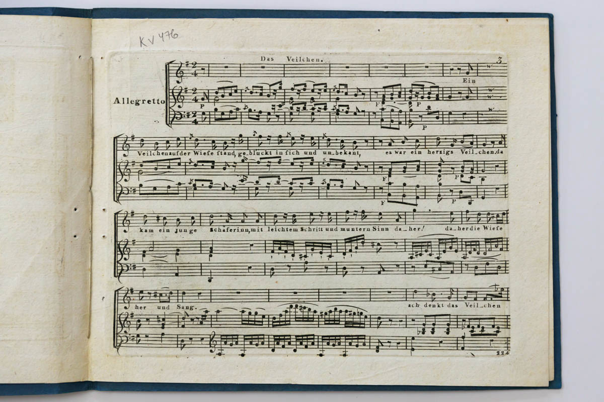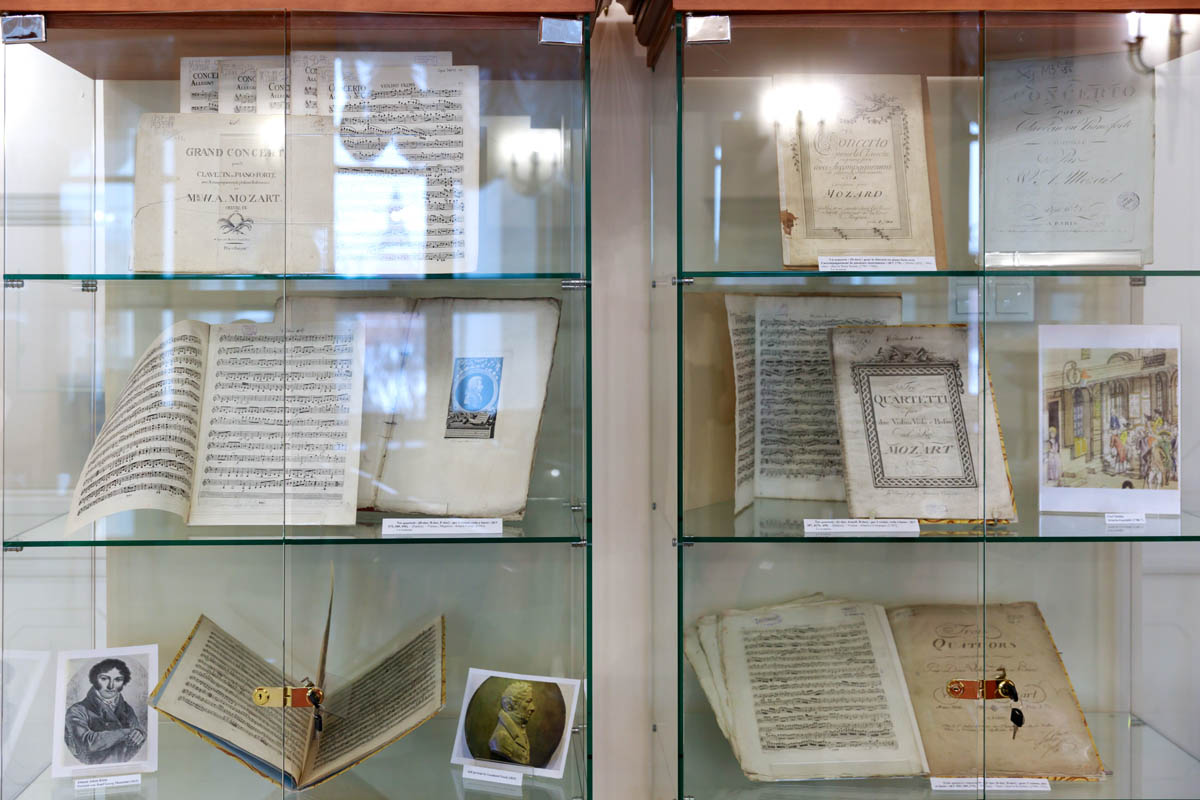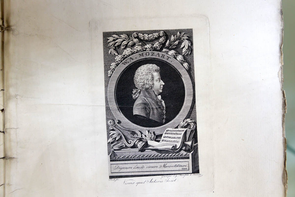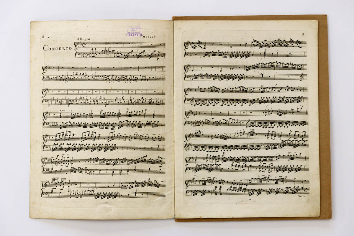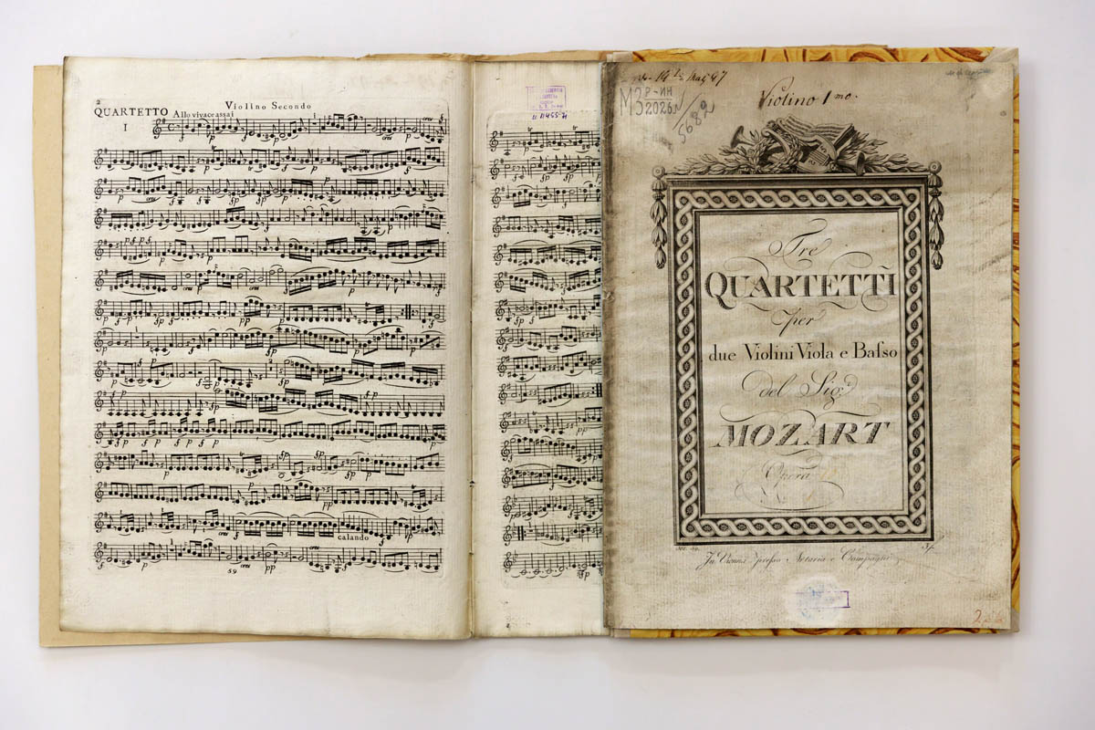 Выставка знакомит с редкими старопечатными изданиями Моцарта. Её основную часть составляют ноты, которые отпечатаны с издательских досок, изготовленных при жизни композитора. Экспозиция демонстрирует ноты с номерами досок, которые в информационных источниках датированы промежутками времени в несколько лет, включающих и те периоды, когда композитор был жив. На страницах десяти из представленных нотных изданий указаны номера досок первых публикаций, поэтому эти экземпляры наиболее ценные.