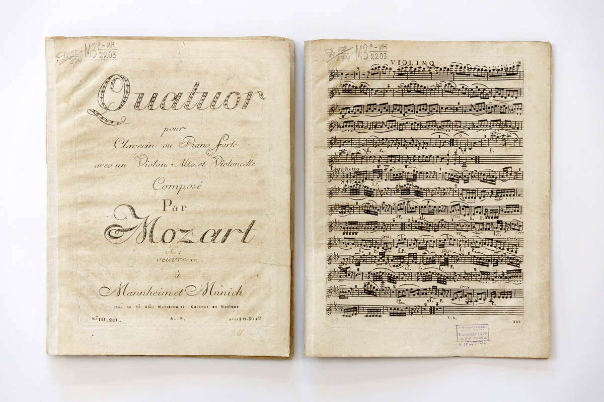 Экспозицию дополняют авторитетные информационные источники, на основании которых в своё время проводилась датировка поступивших в Российскую государственную библиотеку старопечатных нот Моцарта.