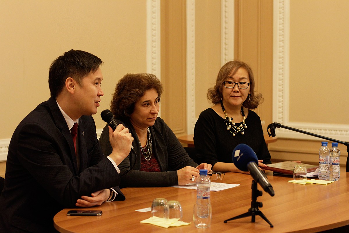 Гостей от имени библиотеки приветствовала Наталья Юрьевна Самойленко, заместитель директора РГБ по внешним связям и выставочной деятельности. Она подчеркнула, как важно, что в главном хранилище культуры России будут книги, изданные в Бурятии, открывающие для наших читателей эту республику — «Пространство впечатлений».