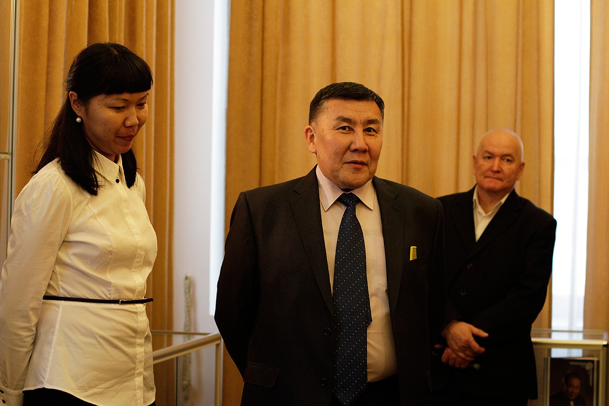 На торжественное открытие выставки прибыли гости: министр культуры Республики Бурятия Тимур Гомбожапович Цыбиков, заместитель министра культуры Республики Бурятия Николай Владимирович Емонаков,