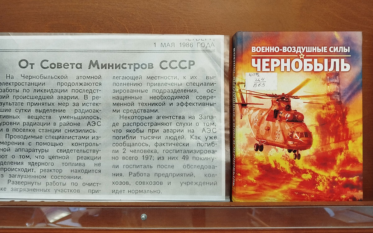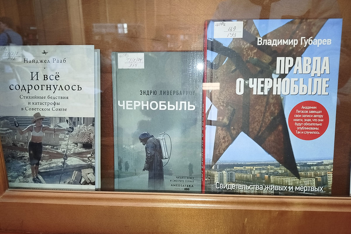 На выставке представлены книги, рассказывающие об истории строительства и запуска ЧАЭС, раскрывающие подробную хронологию развития событий, причины аварии. Материалы показывают героическую роль ликвидаторов катастрофы, страшные последствия этой трагедии и её влияние на развитие всей атомной промышленности мира.