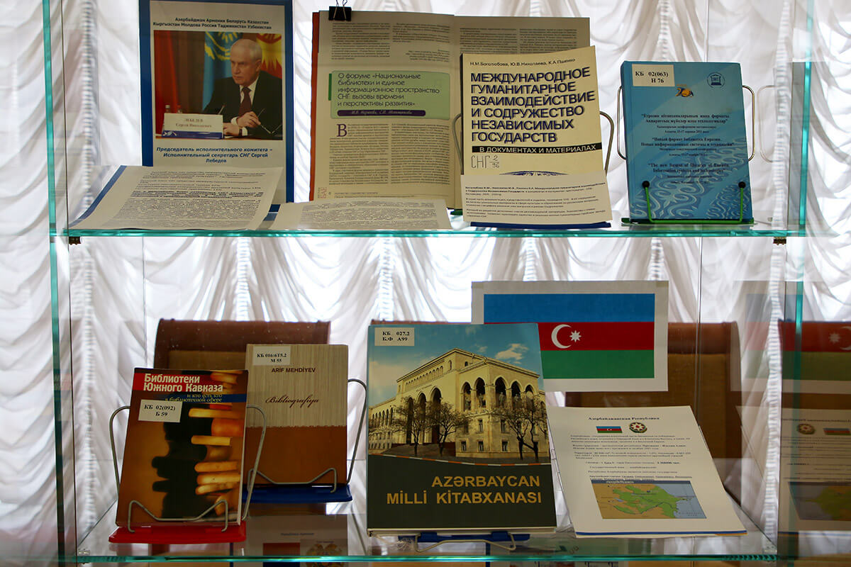 В экспозицию вошли документы и публикации, раскрывающие многолетнюю и разностороннюю деятельность национальных библиотек Азербайджана, Армении, Белоруссии, Казахстана, Киргизии, Молдавии, России, Таджикистана, Туркмении и Узбекистана.