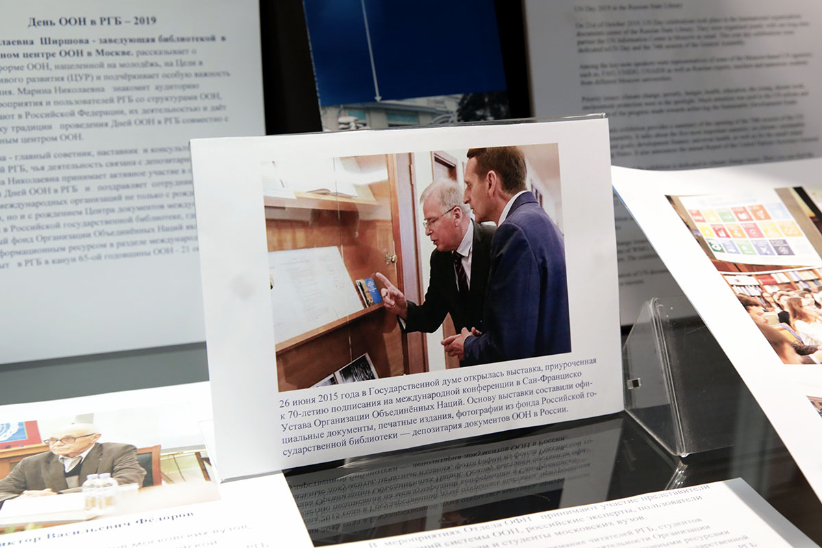 Выставка организована на базе документов и публикаций из депозитарного фонда ООН в РГБ и Информационного центра ООН в Москве. Она будет актуализироваться до конца года и пополняться новыми разделами и экспонатами.
