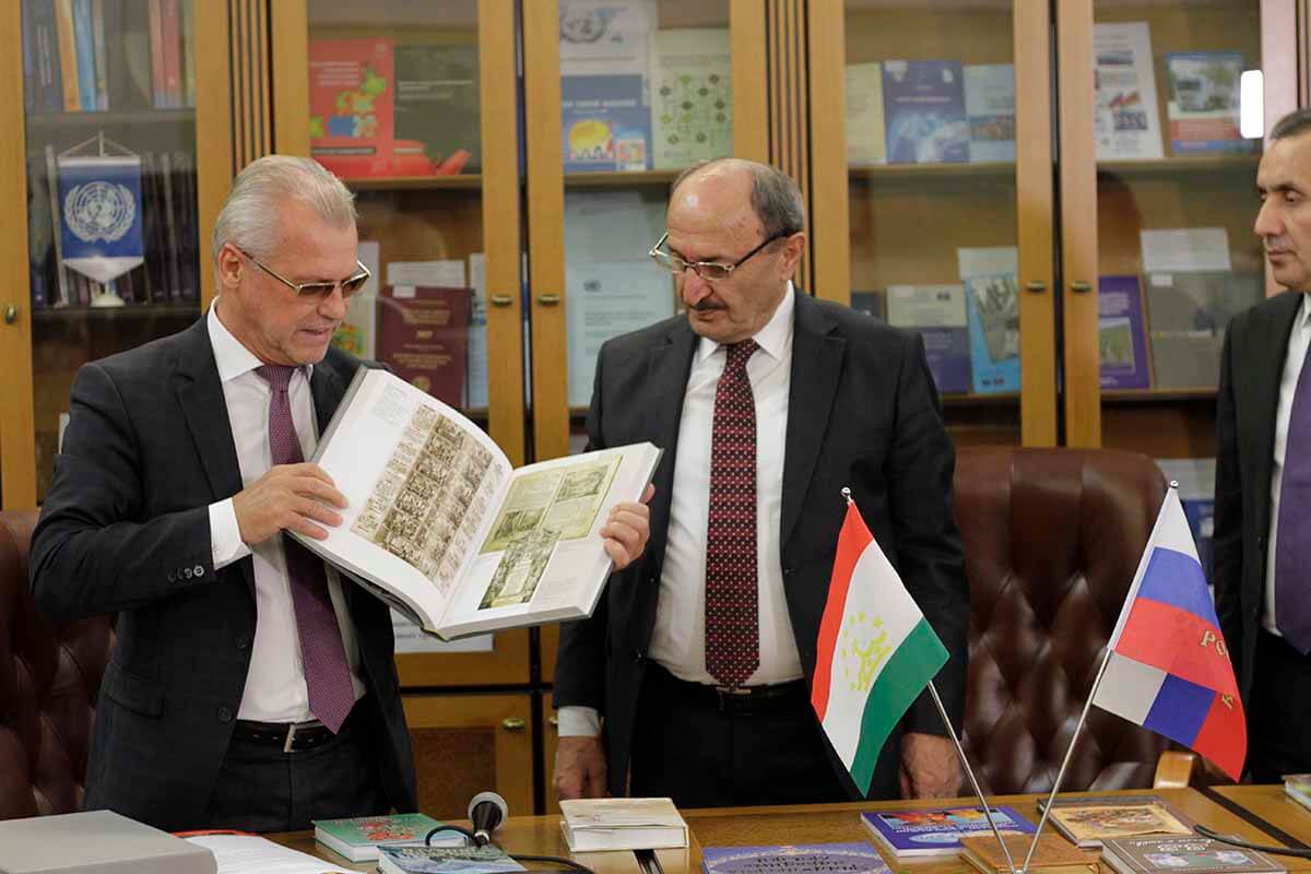 От имени Российской государственной библиотеки гостей приветствовал заместитель генерального директора — исполнительный директор Владимир Гнездилов. «Мы уверены, что эта встреча станет очередным большим шагом к развитию наших отношений, взаимопроникновению культур народов России и Таджикистана», — сказал Владимир Иванович.