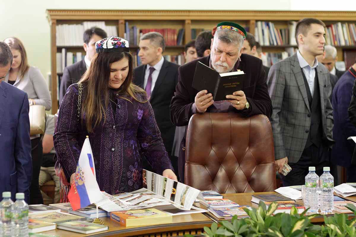 В ходе открытия книжной выставки прошла презентация книги «Зоопарк» современного таджикского автора Абдугаффора Абдужаббарова. Эту и другие книги на русском, таджикском и английском языках, представляющих лучшие произведения классической и современной таджикской литературы, можно увидеть до 10 октября в читальном зале Центра документов международных организаций отдела ОФН РГБ. По окончании выставки большая часть этих книг поступит в фонд библиотеки.