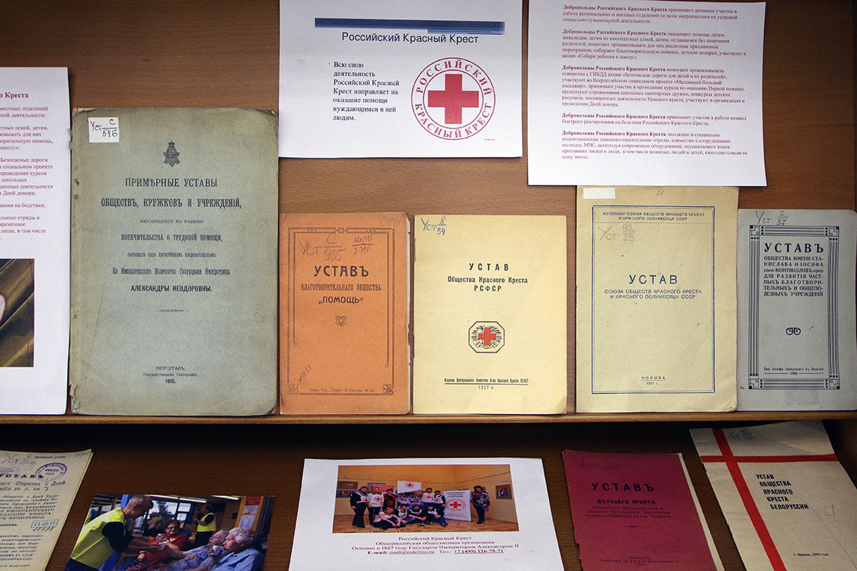 Третий раздел выставки откроет посетителям данные о волонтерском движении в России. Одни из самых уникальных документов, представленных на выставке, — Уставы благотворительных обществ Российской империи (Устав Детского приюта Кавказского Мусульманского и Дамского благотворительных обществ в Тифлисе — Тифлис, 1916, Устав Благотворительного общества «Помощь» — Киев, 1910). Посетителям будет интересно ознакомиться и с Примерными уставами обществ, кружков и учреждений, находящимися в ведении попечительства о трудовой помощи, состоящего под Августейшим попечительством Её Императорского Величества Государыни Императрицы Александры Феодоровны. Здесь же представлены Устав обществ Красного Креста РСФСР, выпущенный в 1927 году, и Устав Союза обществ Красного Креста и Красного Полумесяца СССР, изданный в 1955 году. Современное понятие волонтёрства в России начало формироваться в 1990-е годы, одновременно с зарождением некоммерческих, общественных и благотворительных организаций. Действующая редакция Федерального закона РФ «О благотворительной деятельности и благотворительных организациях» (1995) также представлена на выставке. По данным Росстата, в последние годы наблюдается устойчивый рост числа граждан и организаций, участвующих в волонтерской деятельности. На выставке можно увидеть таблицы Росстата «Волонтёрство в России в цифрах».