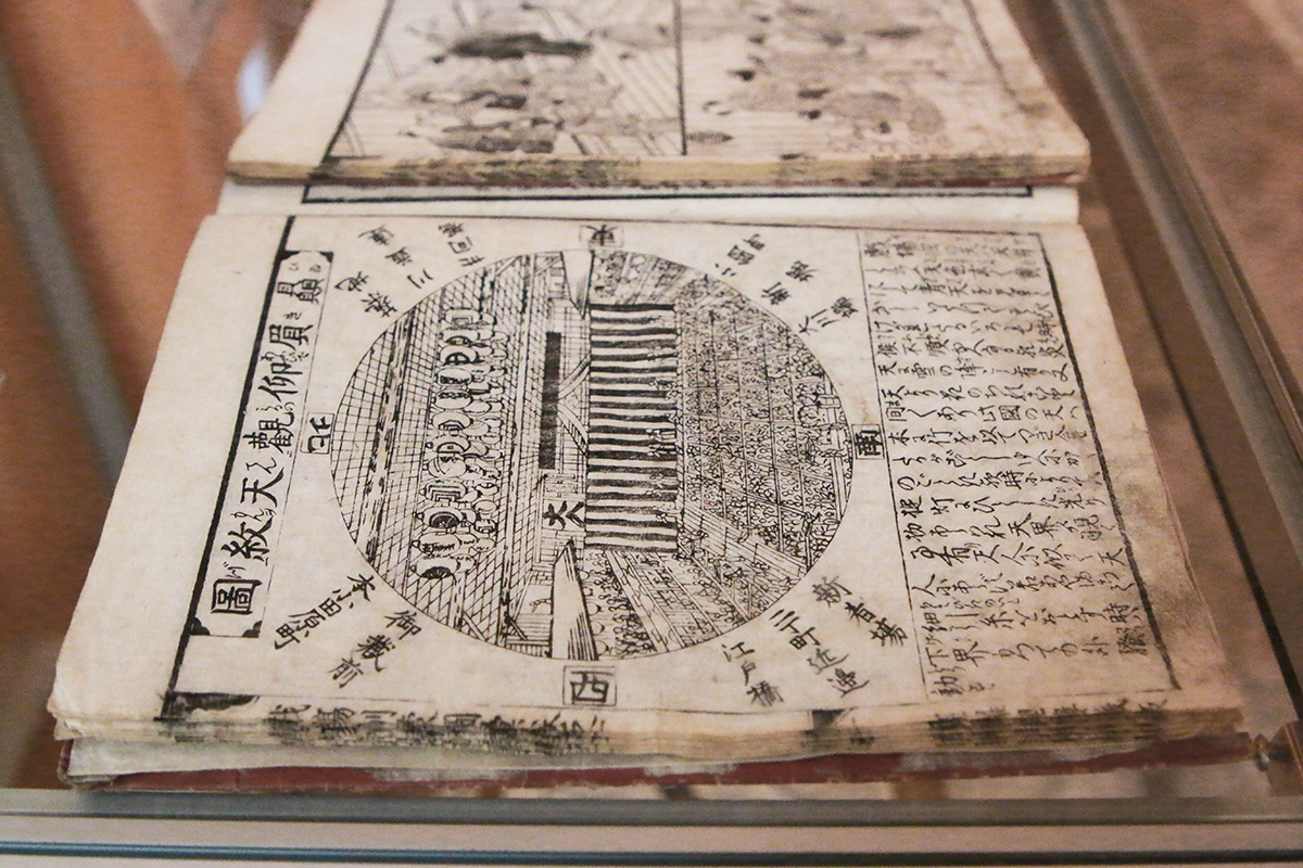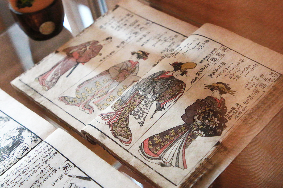 Среди экспонатов выставки — уникальное издание гравюр Утагавы Кунисады (1786-1865) — одного из крупнейших художников Японии периода Эдо (1603-1868), входящего в первую тройку великих мастеров укиё-э. Книга «Известные актеры Кабуки прошлого и настоящего» датируется предположительно 1865 годом и содержит образцы высококачественной цветной ксилографии. Не менее уникальное издание — «Собрание изображений театральных представлений» (Эдо, [1805]) — энциклопедия театра (пародийная и вымышленная), написанная автором комических романов Сикитэй Самба (1776-1822), японским писателем и каллиграфом периода Эдо, с цветными портретами прославленных актёров, выполненными Кацукава Сюнъэй (1762-1819). Художник в своем творчестве часто изображал красавиц-гейш, популярных актёров театра Кабуки, и не менее популярных борцов национального вида борьбы сумо и других героев публики. Ранее издание принадлежало знаменитому кинорежиссеру Сергею Эйзенштейну.
